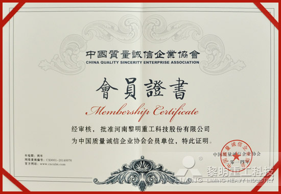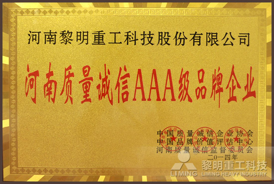 為加快企業(yè)質(zhì)量信用體系建設(shè),營造誠實守信的市場環(huán)境和信用環(huán)境,引導(dǎo)企業(yè)建立質(zhì)量誠信機制,河南質(zhì)量誠信監(jiān)督委員會組織河南省質(zhì)量信用A等工業(yè)企業(yè)評價工作。經(jīng)過資料審查、專家組評審、征求意見及通過工商局和質(zhì)監(jiān)局進行調(diào)研有無產(chǎn)品質(zhì)量和舉報方面的問題等一系列嚴格的評審之后,黎明重工一舉拿下“河南省質(zhì)量信用AAA級品牌企業(yè)”。與此同時,集團公司申請加入“中國質(zhì)量誠信企業(yè)協(xié)會”,成為該協(xié)會的會員單位。